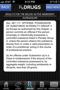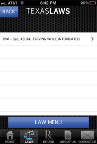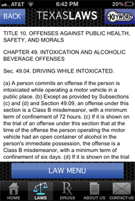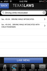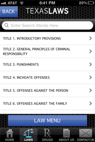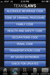 In addition to assisting officers with drug arrests, PolicePal can be quite useful in any police situation. A searchable database of Texas laws can assist when reference is needed quickly. Below are the most commonly used codes that are included in the app: